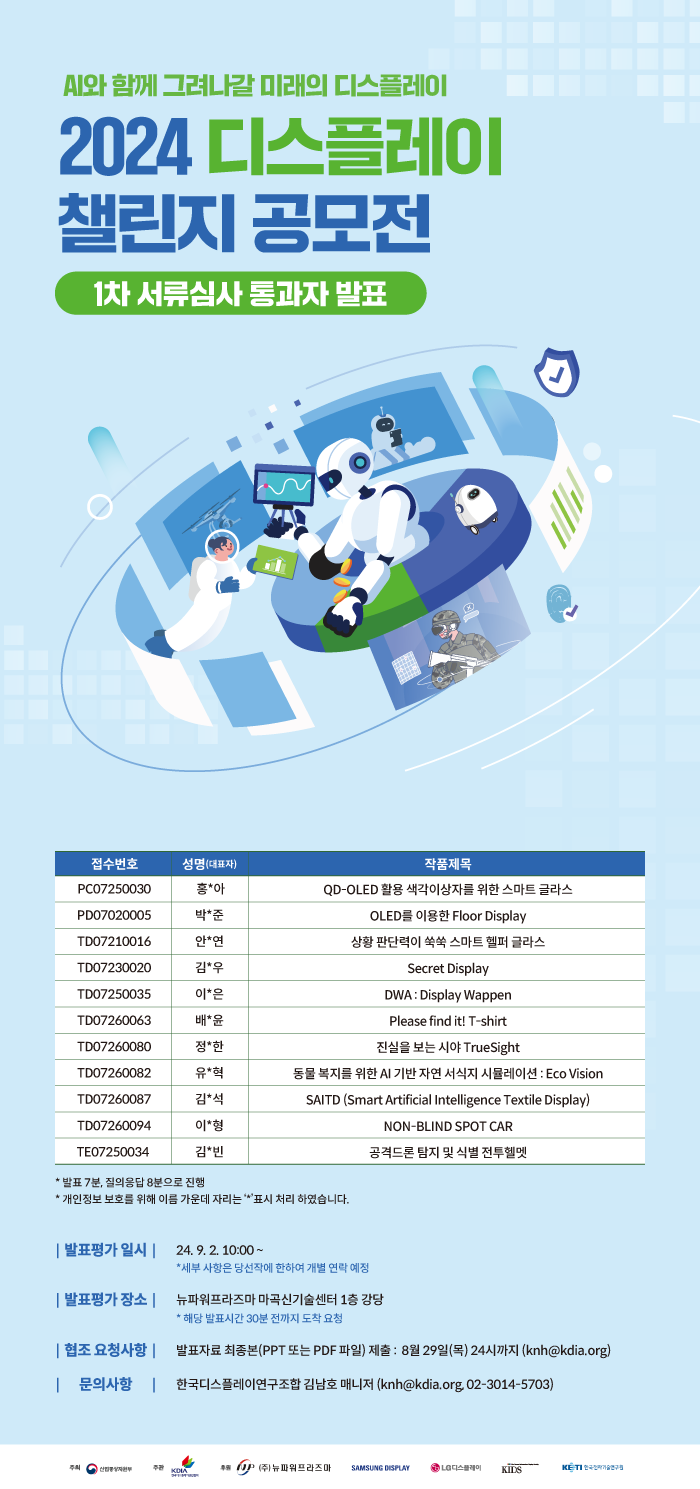 ★ 2024 디스플레이 챌린지 1차 심사 통과자 발표 안내★